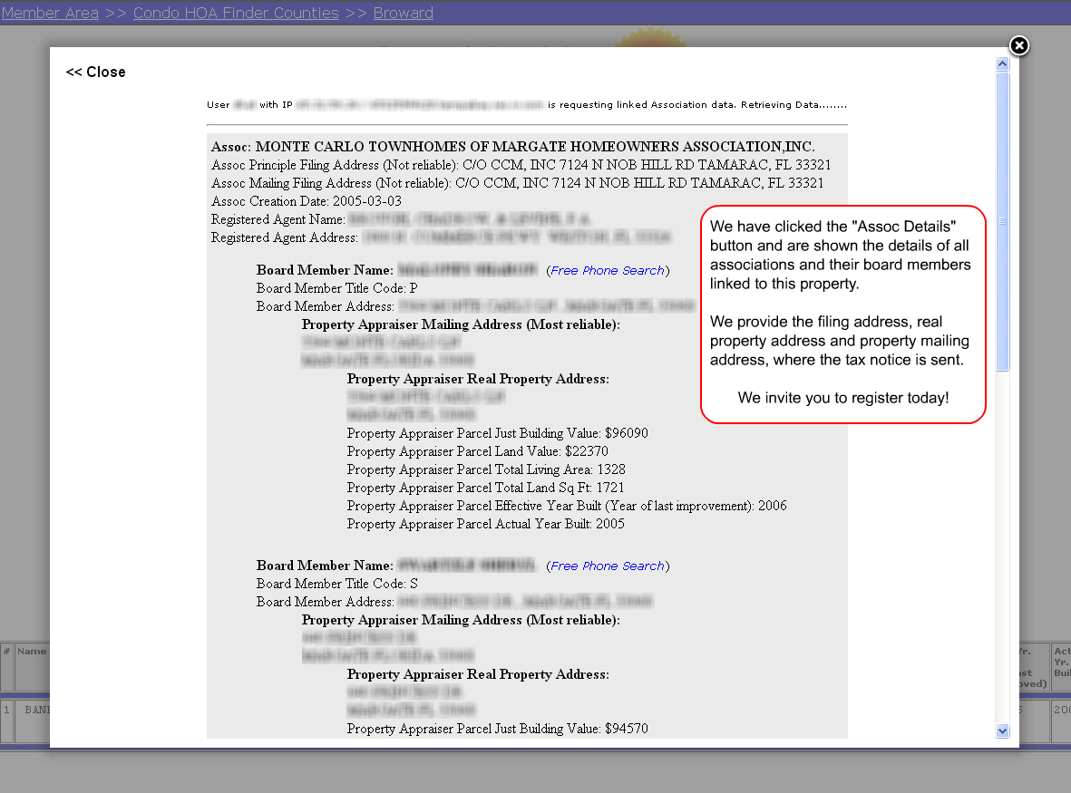 Our board member info is verified by tax records to ensure that you receive the real property and mailing addresses.